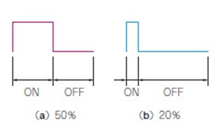 The duty cycle of pulse signals (the ratio of time ON) should also be considered. Generally, for stable signal transmission, it is recommended to output with the duty cycle close to 50% (Figure 15).
