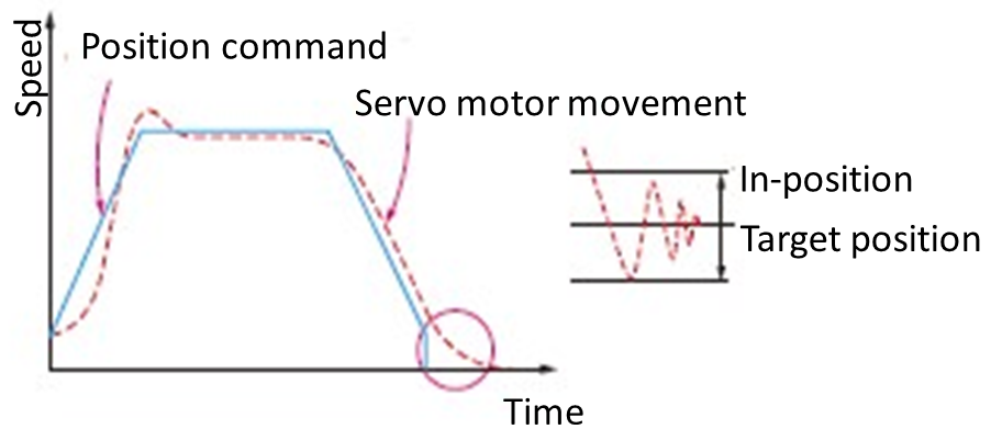 In-position is the positioning complete signal from a servo motor driver. A servo motor operates based on the accumulated pulse amount of the position command pulse and feedback pulse, so in response to the position command, the servo motor always operates with a delay (Figure 22).
