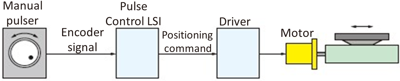 A manual pulser incorporates an encoder within a rotary dial with graduations, and the operators of the pulser device rotates it while viewing the workpiece on the table for fine positioning. In the case of a stepping motor, it may go out-of-step if rotating quickly, so it is also important to suppress the speed.