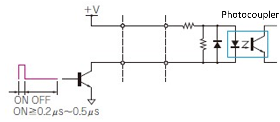 Furthermore, the width of pulse signals (the pulse width) is also important. If the pulse duty width is extremely short, the high-speed photocoupler inside a servo driver or a stepping motor driver may not be able to accurately receive signals (Figure 16). Photocouplers are components that use light to insulate and transmit signals, but very short pulses may not sufficiently follow the ON/OFF of light. As a result, the signals may not be recognized.