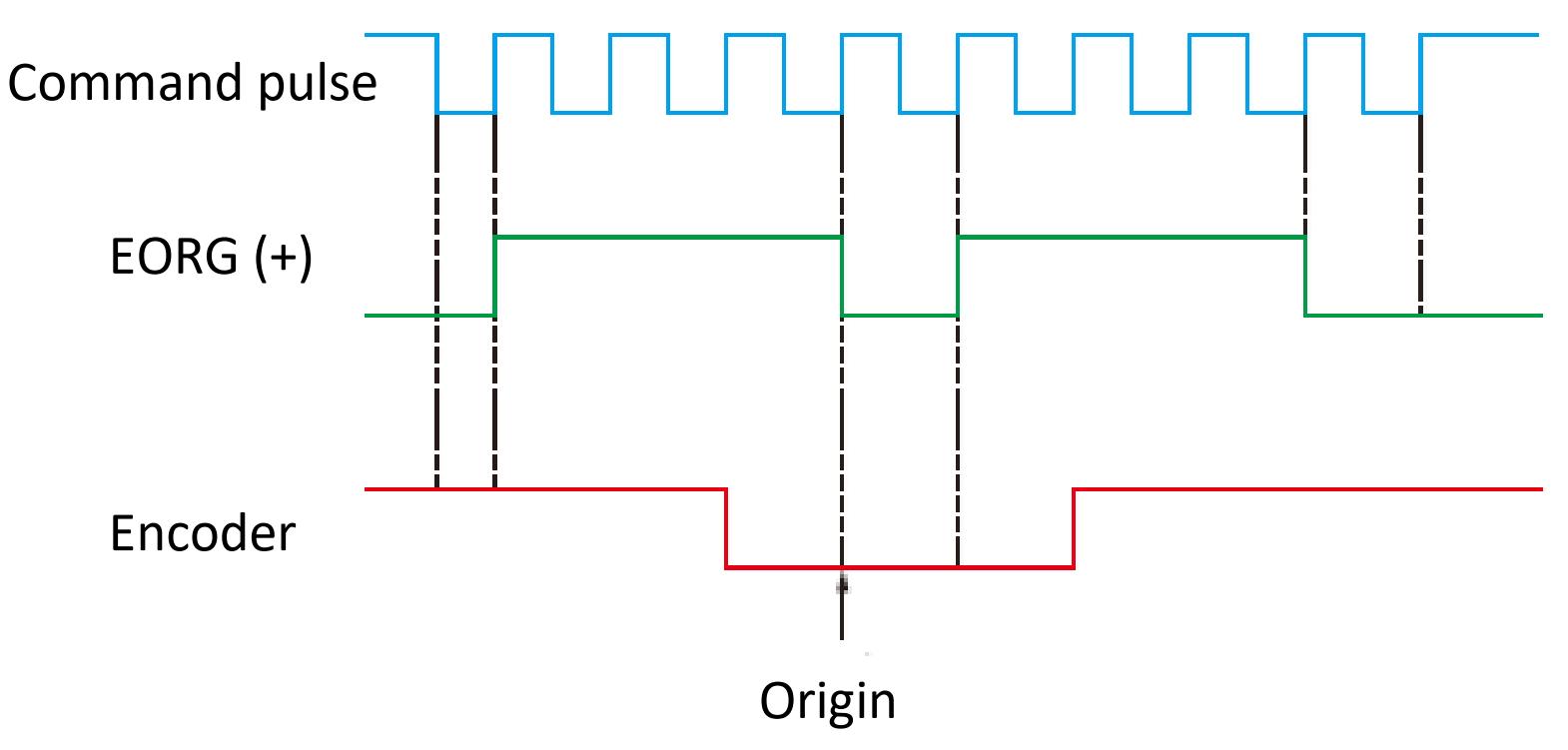 EORG signals can be used in the same way as Z-index signal of a servo motor. For example, consider using the slit of a disk attached to the back of a motor as the origin signal. In addition to the signal from this physical slit, using an EORG signal like the Z index allows for more accurate and reliable detection of stepping motor’s origin position. This enables more reliable origin return operation (Figure 28).